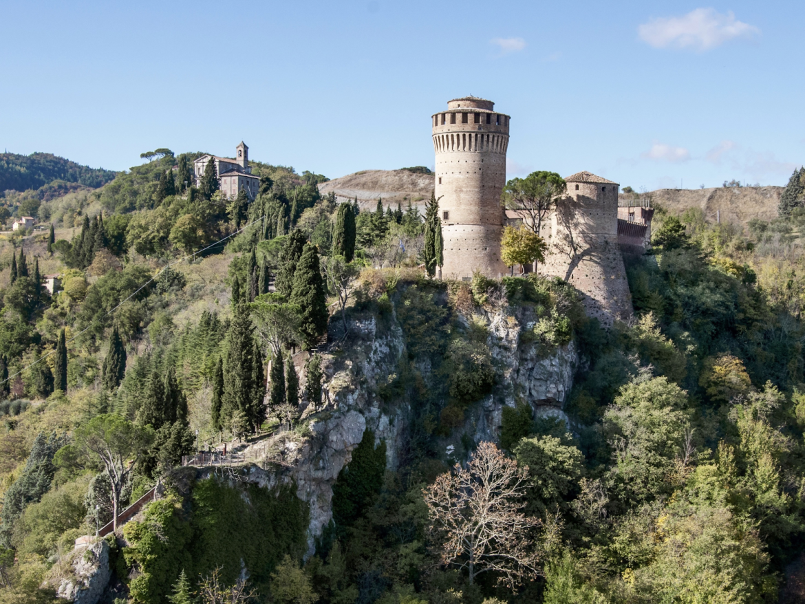 Brisighella in Emilia-Romagna offers a dramatic introduction to Italy’s quieter side. Lone trees cling to rocky outcrops, while medieval towers stand watch over the countryside. The scene feels like a living painting.